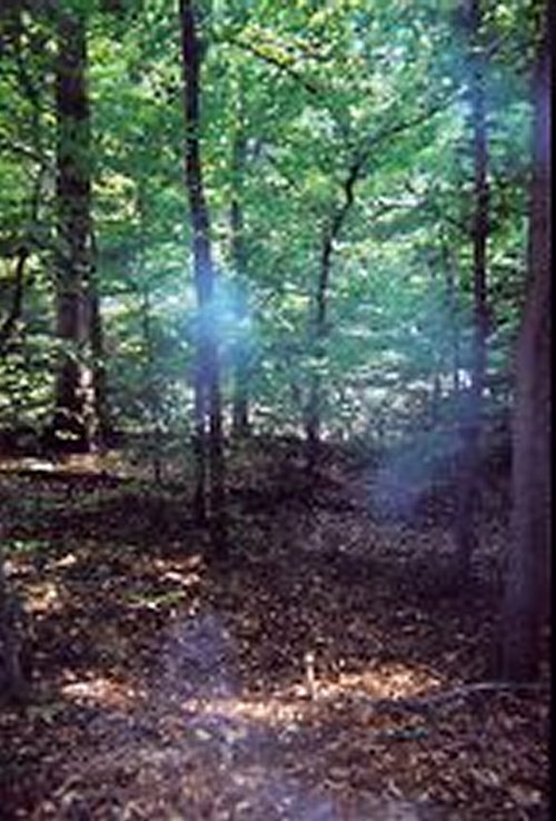 Looking down at the hollow below the tree where Chandra was found. - James Forrester